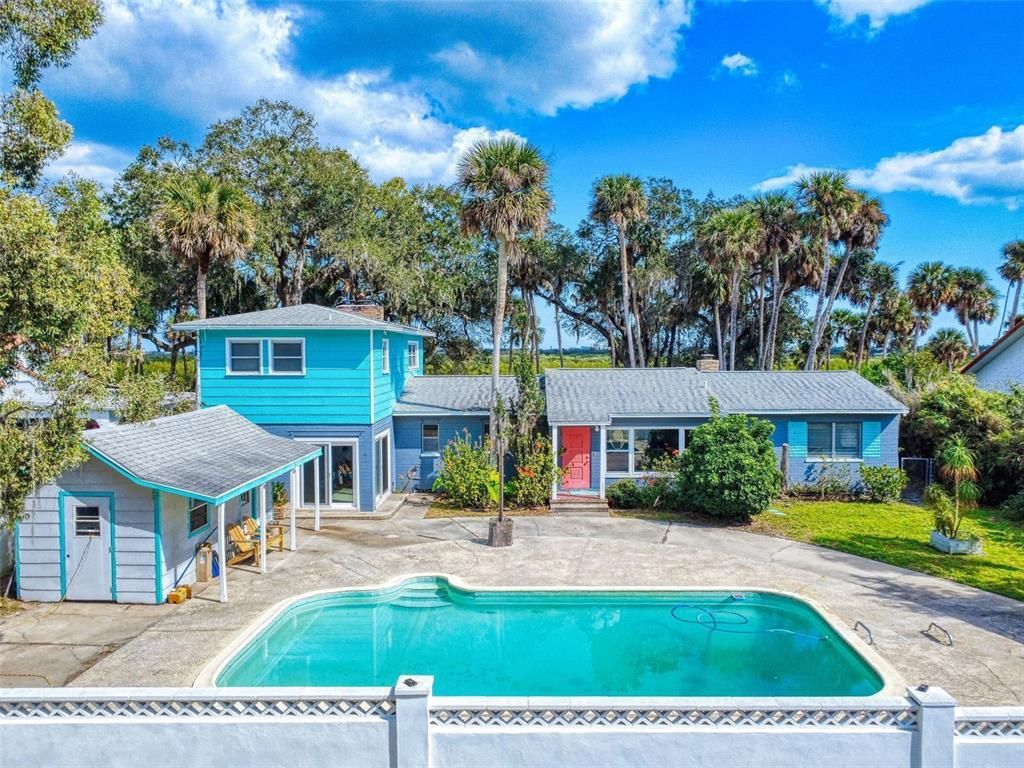 Edit mortgage details for a more accurate paymentBreathtaking Sunsets Await in this Timeless Retro Waterfront Home on Riverside Drive. Step into a home that beautifully blends the character of the 1950s with the flair of the 1970s, offering a unique retro-coastal feel in one of New Smyrna Beach's most sought-after locations. This is a stunning two-story, 4-bedroom, 3-bathroom pool home, where mid-century craftsmanship meets modern comfort capturing the character and warmth of its era while offering the best of coastal Florida living. Located directly across from the brackish, fisherman-friendly waters of the Indian River, it provides a serene waterfront setting, just minutes from the shopping, dining, and entertainment of Flagler Avenue and historic Downtown Canal Street. Inside, the rich patina of original hardwood floors, graceful archways, and thoughtful built-ins reflect the artistry of the 1950s, while high ceilings and oversized windows bathe the home in natural light. The inviting open floor plan seamlessly blends function and charm, making it perfect for both entertaining and everyday living. Three vintage-inspired fireplaces-one in the living room, one in the owner's suite, and another in a cozy sitting area offer timeless appeal and warmth on cool Florida evenings. The owner's suite is a tranquil retreat, complete with a large custom walk-in closet and private fireplace, creating a cozy yet spacious sanctuary. Step outside to experience the best of Florida's outdoor lifestyle, whether it's sipping coffee on the classic front porch, soaking up the sun on the expansive poolside patio, or enjoying the warm river breezes that drift through the property. Across Riverside Drive, there's space to build your own private dock, offering the perfect spot to store your boat, watch dolphins and manatees, or simply take in the beauty of the Intracoastal Waterway. With dual access from both Faulkner and Riverside, a handy shed/workshop, and lush tropical landscaping, this home offers all the charm and character of the 1950s, combined with an unbeatable waterfront location. This home is a rare waterfront find that won't last long.-Schedule your private showing today!